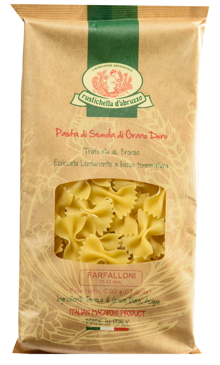 The great butterfly of the pasta world. Farfalloni are the luscious version of farfalle – wider, more voluminous, with more surface area to play with. The characteristic centre fold, which holds both wings together, ensures different cooking points in a single format: firmer on the outside, more tender on the inside. Bronze mould, slow drying. For strong vegetable sauces, for salmon, for salads – a format that loves colour and texture on the plate. SUPERIORE.DE