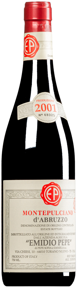 "The 2001 is a sultry and flirtatious vintage of pep's Montepulciano d'Abruzzo Vecchie Vigne. Initially dark and a little cloudy, it takes almost an hour to give off a musky, almost woolly, mineral and animal note; but underneath it all are flavours of tobacco, cherry sauce, scorched earth and a mentholated, herbal freshness that gives it a wonderful lift. This soft, almost fleshy wine finds a beautiful harmony through a blend of nervous acidity and citrusy red fruits that give it a very energetic and almost juicy flavour. Nuances of blood orange and a hint of inner sweetness mingle with an inner sensation of wet autumn leaves, while the 2001 finishes completely resolved, long and with a hint of balsamic spice that still lingers. It takes a little work to unlock the 2001's charms, but you should be lucky if you don't gulp down the whole bottle as soon as it's opened." Vinous