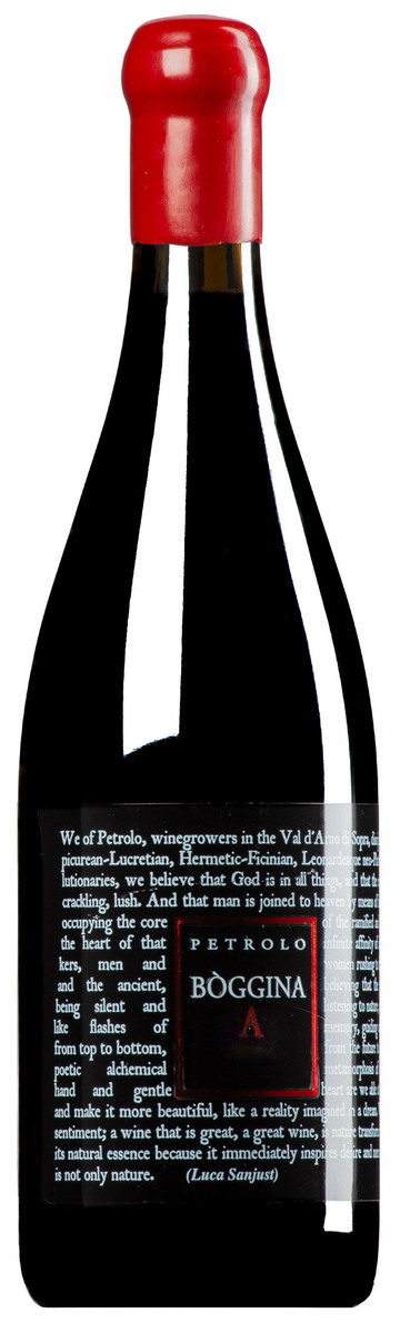 "The Petrolo 2021 Val d'Arno di Sopra Bòggina A was created in a year that winemaker Luca Sanjust describes as a difficult year for agriculture, but which ultimately led to great results. The wine shows a particularly dense and firm character that becomes almost Burgundian with time, with floral notes and blood orange. The sulphites are kept to a minimum to give the wine the drive and vigour that works so well. This wine is now a primary wine with a crisp fruit quality. Give it time to age." Wine Advocate