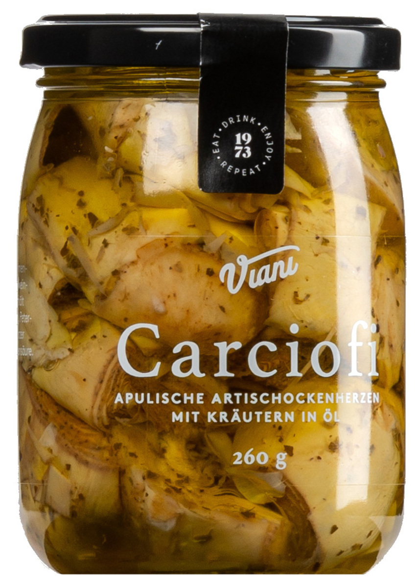 Cœurs d'artichauts tendres à l'huile d'olive. Ils sont préalablement nettoyés avec soin et marinés avec des herbes aromatiques. Ces petits délices sont délicieux avec du jambon épicé, du fromage fort ou nature sur du pain grillé au feu de bois. SUPERIORE.DE