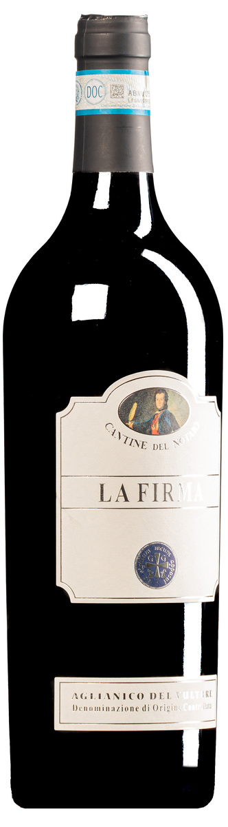 "La Firma" - "La signature". Les vins de Gerardo Giuratrabocchetti rappellent par leur nom l'univers notarial de son père. La Firma, un Aglianico monocépage qui vieillit dans des grottes naturelles de tuf volcanique, de carats et de fûts de chêne français. Magnifique robe rubis aux reflets violets éclatants. Bouquet complexe avec des arômes de petites baies noires, de réglisse et de foin. Puissant et très harmonieux en bouche, caractérisé par des tanins veloutés et une longue finale balsamique. Superbe potentiel de vieillissement ! SUPERIORE.DE