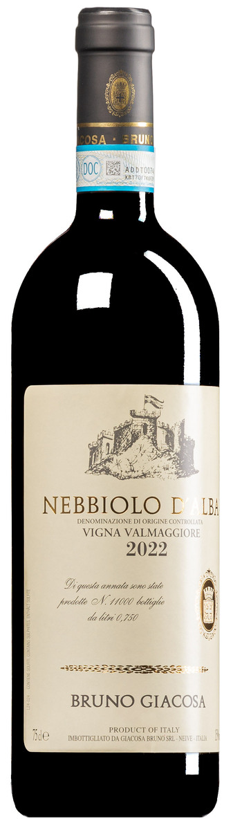 "Le Bruno Giacosa 2022 Nebbiolo d'Alba Vigna Valmaggiore s'ouvre sur des arômes de cerise claire et une belle couleur rubis. Le vin montre une grande intensité de fruit et il y a une note de cerise confite qui se remarque vraiment dans ce millésime. Il est particulièrement fruité et lumineux. Le fruit est généreux et primaire, et le vin se termine sur des tanins légèrement crayeux." Wine Advocate