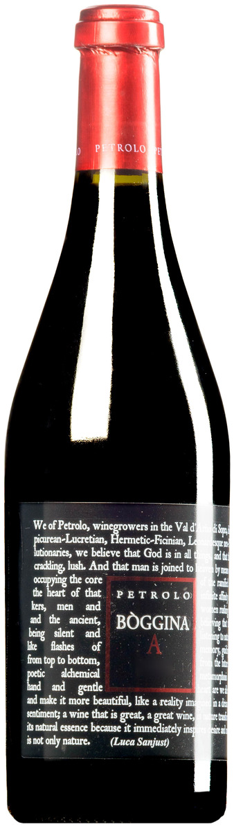 "Le Petrolo 2020 Val d'Arno di Sopra Bòggina A présente le cépage sangiovese avec une personnalité fraîche, concentrée, presque croquante. Ce vin bio s'ouvre sur des arômes de fraises des bois ou de fragolino, de lilas, d'orange sanguine et de terre rouillée. Il possède un caractère presque brillant ou brillant. Le Bòggina A présente beaucoup de fraîcheur primaire, des tanins fins et une acidité équilibrée." Wine Advocate