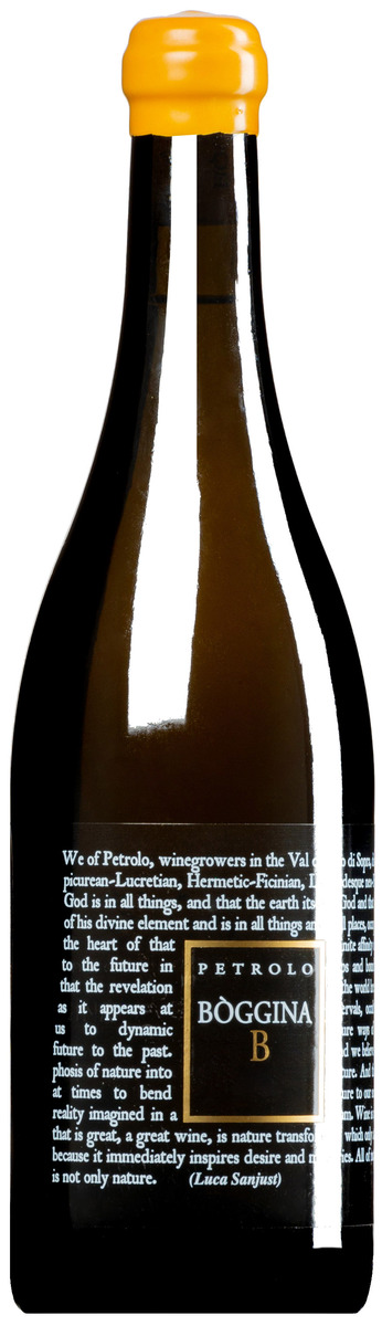 "Le Petrolo 2022 Bòggina B, produit à partir du cépage trebbiano, est crémeux et riche, avec des fruits à noyau juteux, du miel et une touche de safran. Le Trebbiano peut avoir un caractère austère et offre une bonne acidité naturelle ; ces caractéristiques le rendent idéal pour le vieillissement sur lies. Ce vin blanc a la possibilité de continuer à se développer en bouteille." Wine Advocate