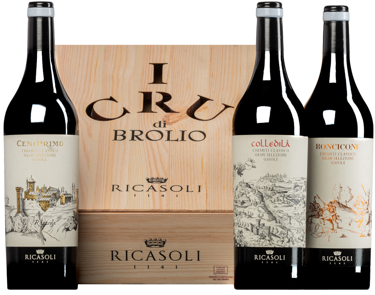 Nous avons le plaisir de vous proposer les trois Brolio-Cru de trois terroirs de Gaiole dans la caisse en bois à tirage limité de 3 bouteilles !