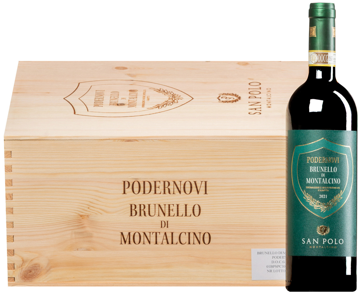 Brunello di Montalcino “Podernovi” DOCG 2021 (BIO) · 6 bouteilles en boîte originale en bois