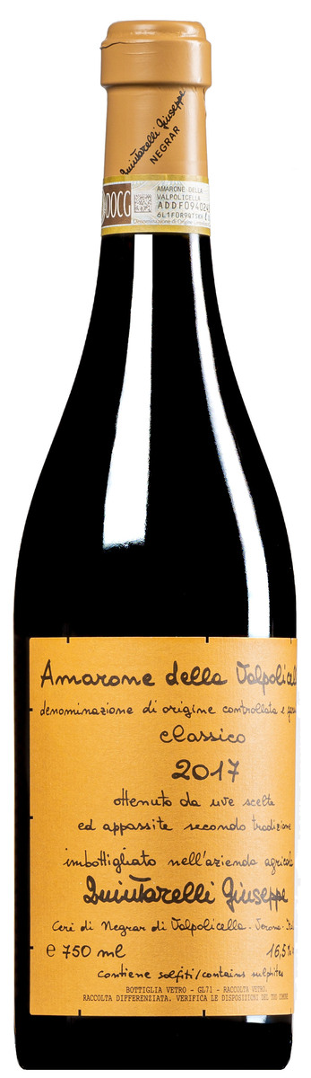 "Ce fut un millésime très chaud et sec qui a créé les conditions pour des vins particulièrement intenses et structurés élaborés à partir de raisins séchés à l'air. Le Quintarelli Giuseppe 2017 Amarone della Valpolicella Classico est en effet un vin puissant et solide. Cet assemblage de raisins de la Valpolicella provient de 11 hectares de vignes sur des sols calcaires et basaltiques. Le millésime 2017 offre des arômes de fruits secs, de prune et de mûre, sur une approche ouverte, riche en oxygène et accessible. Il y a du goudron, des épices et des cerises douces confites à l'arrière-plan. Un thème de fruits sucrés et brandis se rattache à une teneur en alcool de 16,5 % bien équilibrée." Wine Advocate