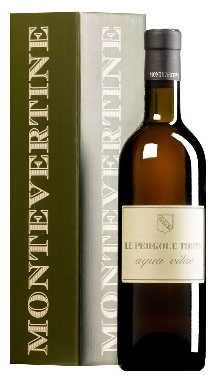 Aqua Vitae nasce dalla collaborazione tra la Distilleria Artigiana di Gioacchino Nannoni, che si occupa direttamente dell'intero processo di distillazione, maturazione e imbottigliamento, e l'Azienda Agricola di Montevertine, che fornisce le vinacce di Sangiovese provenienti dal vigneto "Le Pergole Torte". Dopo la distillazione a vapore, il vino viene fatto maturare per circa quattro anni in botti di rovere Caratelli. Ambrato nel bicchiere, morbido, caldo, intenso e delicatamente avvolgente al naso e al palato - stilisticamente è più simile a un Armagnac che a una grappa. SUPERIORE.DE
