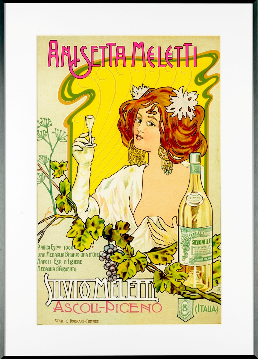 Stampa d’arte con cornice · Pubblicità storica “Meletti” Motivo 2