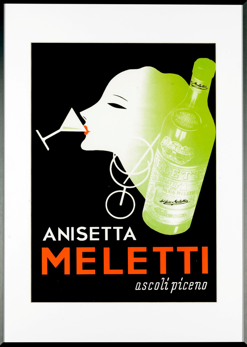 Stampa d’arte con cornice · Pubblicità storica “Meletti” Motivo 4
