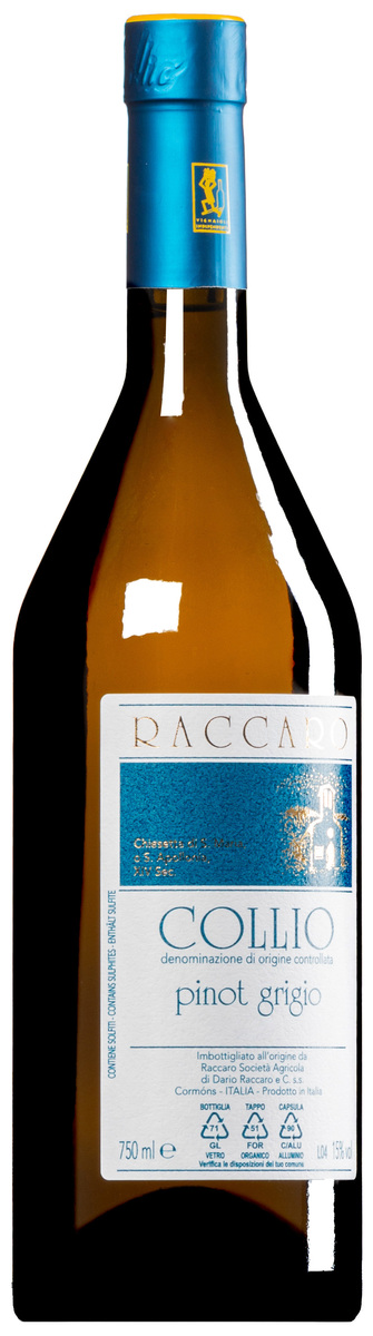 Oltre ai suoi vigneti di Friulano, Dario Raccaro coltiva da molti anni un piccolo vigneto di Pinot Grigio 100% Guyot. Dalla vendemmia 2022 vende solo 2.000 bottiglie di questo vino pregiato e siamo lieti di averne ricevuto un'assegnazione. Colore giallo paglierino chiaro, bouquet fine e floreale con tracce di pietra focaia e fumo bianco. Ben strutturato al palato fresco, morbido e scorrevole, molto vellutato e profondo allo stesso tempo, una magistrale interpretazione del Pinot Grigio! SUPERIORE.DE