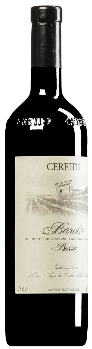 Il Barolo Bussia di Ceretto proviene da uno dei cru più famosi al confine tra i comuni di Monforte d'Alba e Barolo, e si approvvigiona di Nebbiolo da un appezzamento di 7.000 metri quadrati in località Bussia Soprana a Monforte d'Alba. Vengono imbottigliate solo 3.500 bottiglie 1/1 e 200 magnum.