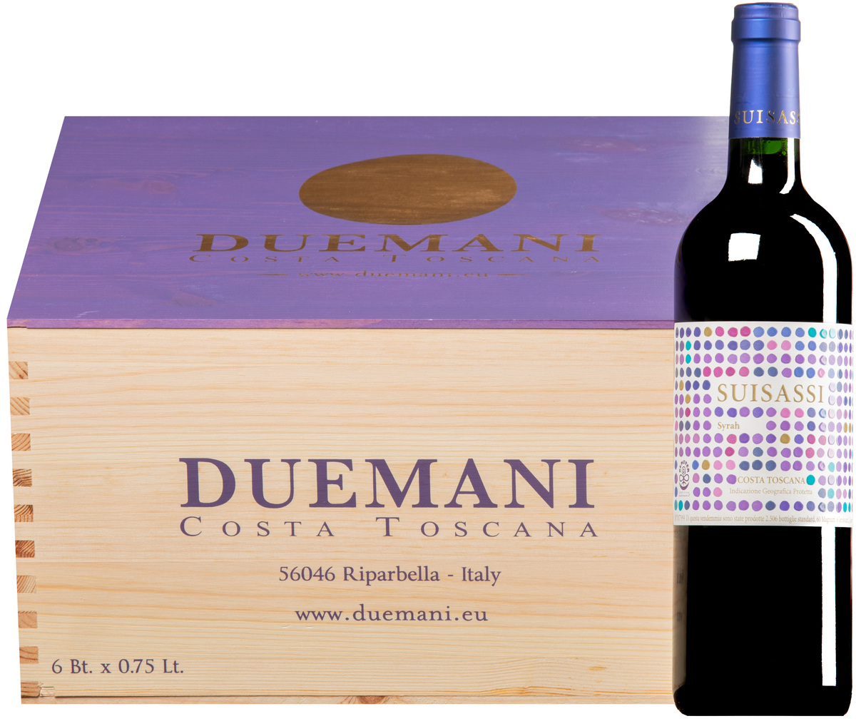 “SUISASSI” Syrah Rosso Costa Toscana IGP 2021 (BIO) · 6 bottiglie in cassetta di legno