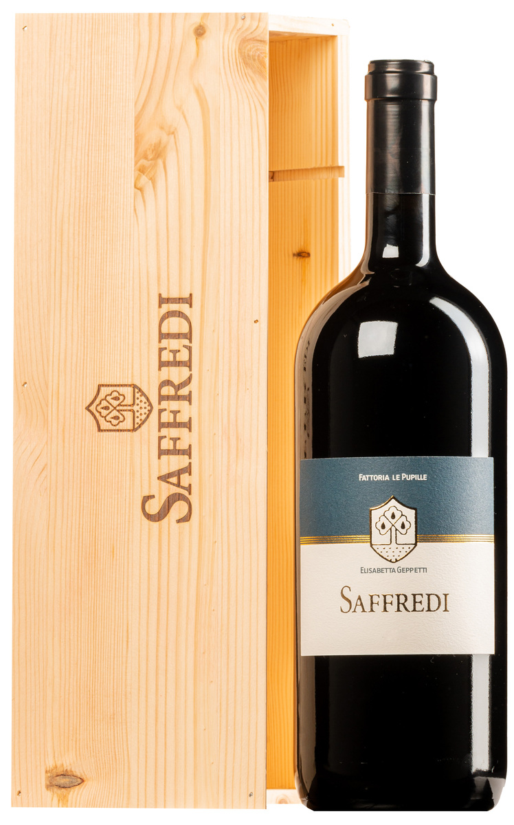 “Saffredi” Rosso Toscana IGT 2023 · MAGNUM in cassetta di legno