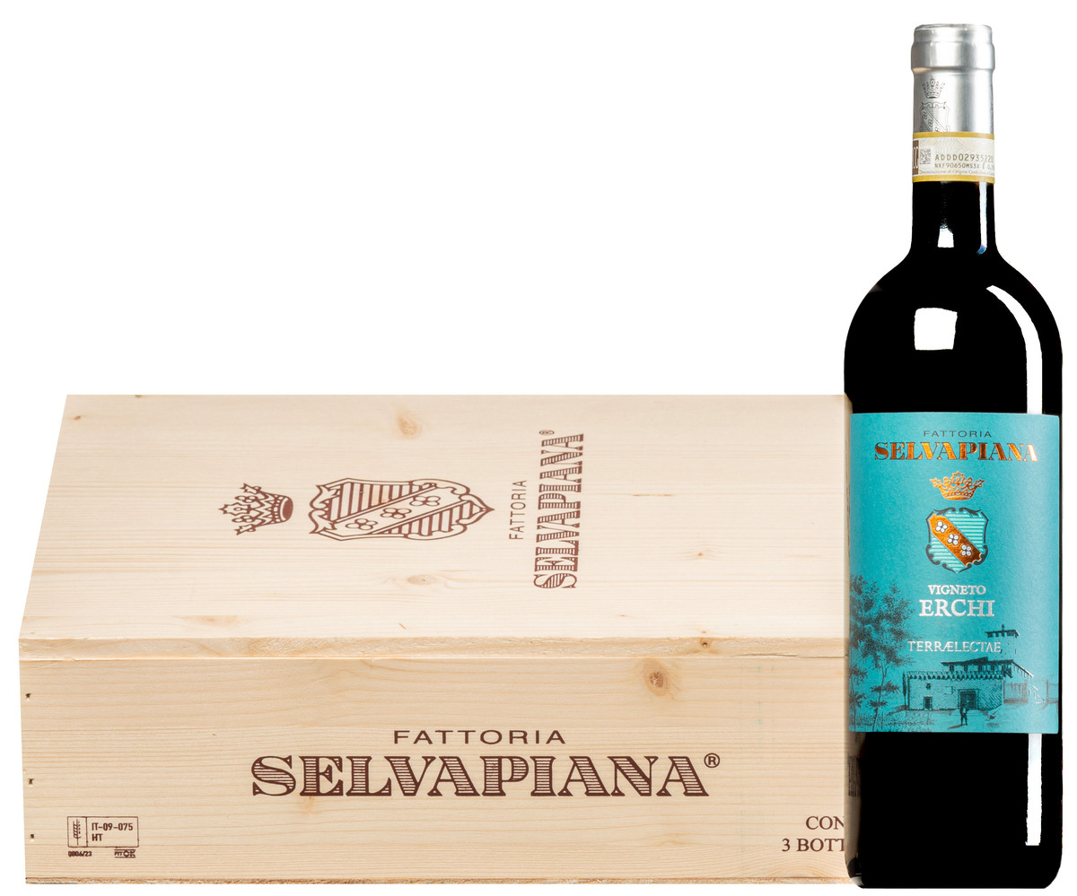 Die Spitzen-Riserva Vigneto Erchi stammt aus dem kleinen, gleichnamigen Weingut, welches seit 1998 zum Besitz der Fattoria Selvapiana gehört. Lange haben die Eigentümer nach einem Weingut gesucht, dessen Terroir die Vielschichtigkeit des Sangiovese im Rufina-Gebiet eindrucksvoll beweist und so ist dieser Wein eine hochkarätige Ergänzung der berühmten Selvapiana-Kollektion.