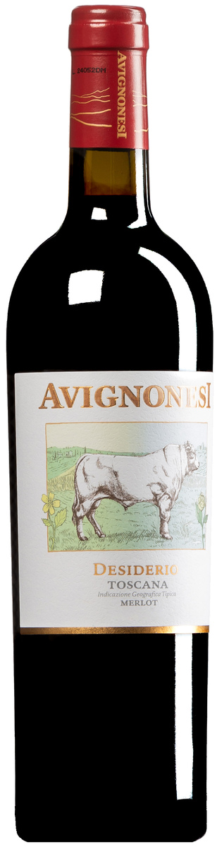 Vor mehr als hundert Jahren lebte auf der Capezzine-Farm von Avignonesi ein weißer Stier namens Desiderio. Er war der größte Stier der Toskana seiner Zeit – und mehr noch: Er gehört zu den anerkannten Urahnen der Chianina-Rasse, jener edlen Rinderrasse, aus der die Bistecca Fiorentina geschnitten wird. Wer heute ein T-Bone-Steak nach Florentiner Art genießt, trägt mit einiger Wahrscheinlichkeit ein wenig DNS von Desiderio auf dem Teller. Es kam daher wie von selbst, dass Avignonesi seinen kraftvollsten Rotwein nach ihm benannte. Das Etikett zeigt ihn – und verändert sich mit jedem Jahrgang. Himmel, Lichtstimmung, Details in der Darstellung erzählen vom Klima des Jahres: ob heiß oder kühl, trocken oder balanciert. Ein stiller Jahrgangskommentar in Bildform.